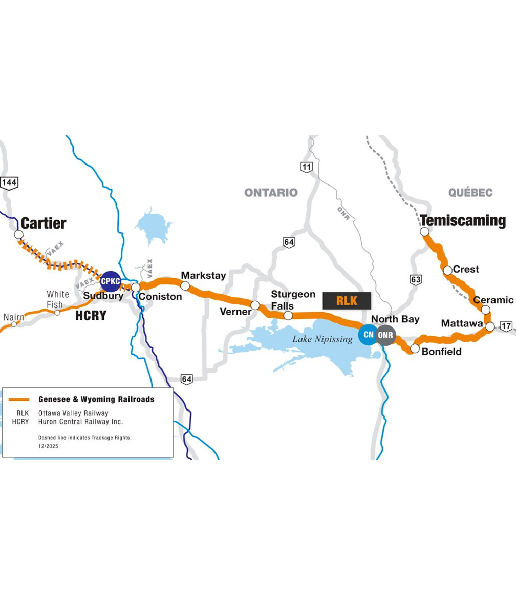 Canadian National (North Bay, Ontario); Canadian Pacific Kansas City (Sudbury, Ontario); Ontario Northland Railway (North Bay, Ontario)